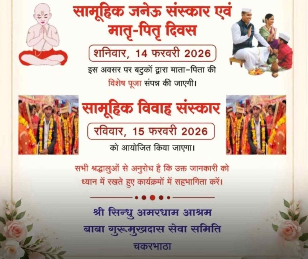 चक्करभाटा :- 14–15 फरवरी 2026 को सामूहिक जनेऊ, मातृ-पितृ पूजन एवं सामूहिक विवाह संस्कार का दिव्य…