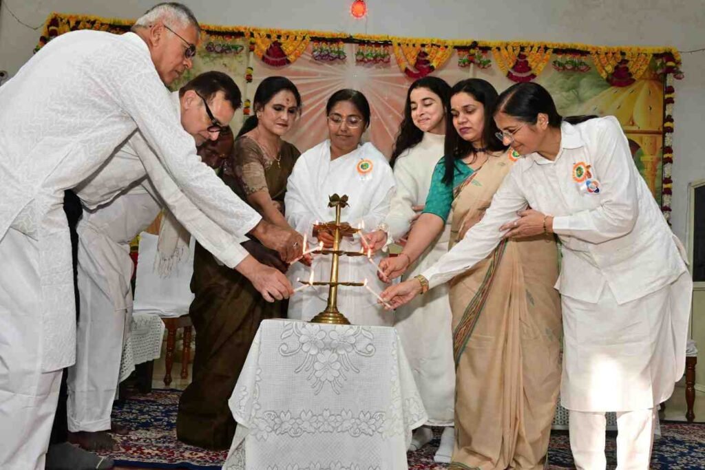 बिलासपुर उसलापुर/प्रजापिता ब्रह्मा कुमारी ईश्वरीय विश्व विद्यालय, ओम शांति सरोवर, उसलापुर के प्रांगण में वरिष्ठ, बुजुर्ग…