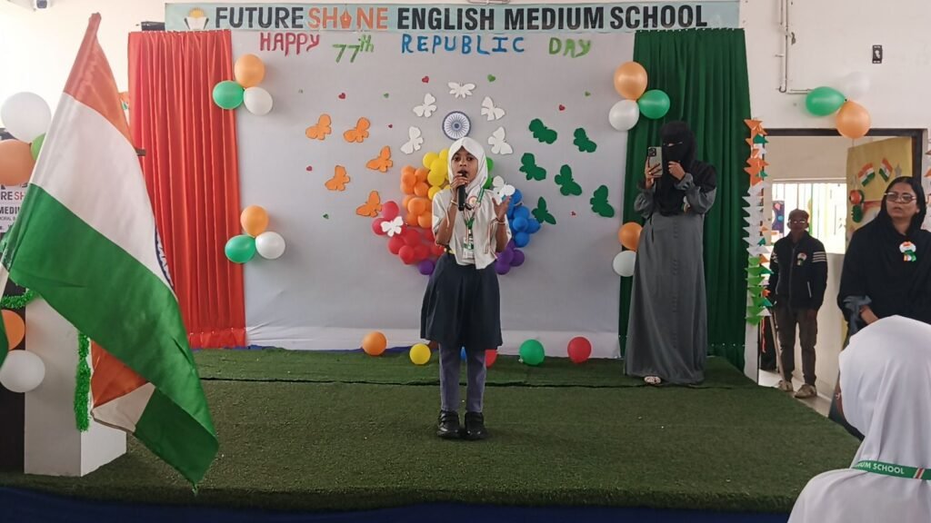 कार्यक्रम का समापन सभी छात्रों को मिष्ठान वितरित करने के साथ हुआ। हर चेहरे पर मुस्कान और हृदय में राष्ट्रप्रेम की गहरी अनुभूति थी। फ्यूचर शाइन इंग्लिश मीडियम स्कूल ने एक बार फिर सिद्ध किया कि शिक्षा का सच्चा अर्थ मूल्यों और देशभक्ति पर आधारित होता है।