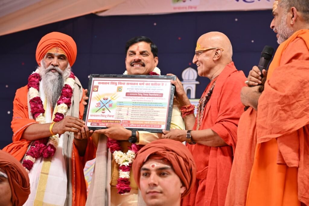 - भीलवाड़ा :- पीएम मोदी के नेतृत्व में हो रही सनातन संस्कृति के गौरव की पुर्नस्थापना -सीएम डॉ. यादव* *सनातन दीक्षा ग्रहण कर संत बने तीन दीक्षार्थी, संतों ओर समाज ने किया अभिनंदन* *हरि शेवा आश्रम परिसर में सनातन मंगल महोत्सव एवं दीक्षा दान समारोह का भव्य आयोजन* भीलवाड़ा,26 फरवरी। धर्मनगरी भीलवाड़ा के लिए 26 फरवरी गुरूवार एतिहासिक दिवस बन गया जब हरिशेवा आश्रम सनातन मंदिर में सनातन मंगल महोत्सव एवं दीक्षा दान समारोह के अवसर पर देश के विभिन्न क्षेत्रों से ख्यातनाम महामंडलेश्वरों, श्री महंतो, महन्तों व संत महात्माओं की एक मंच पर मौजूदगी ने सनातन संस्कृति के ‘‘मिनी महाकुंभ’’ का नजारा प्रस्तुत कर दिया। इस दौरान उदासीन कार्ष्णि पीठाधीश्वर महामंडलेश्वर स्वामी गुरूशरणानंद महाराज रमणरेती मथुरा की अध्यक्षता एवं हरिशेवा उदासीन आश्रम सनातन मंदिर के महामंडलेश्वर स्वामी हंसराम उदासीन महाराज के मार्गदर्शन में आयोजित समारोह में मध्यप्रदेश के मुख्यमंत्री डॉ. मोहन यादव एवं राज्यसभा सदस्य बालयोगी उमेशनाथ महाराज के विशिष्ट आतिथ्य ने धर्मसत्ता के साथ राजसत्ता का संगम करा दिया