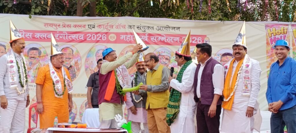 .पिछले 29 साल से नॉनसेंस टाइम्स प्रकाशन के लिए इस अवसर पर प्रेस क्लब अध्यक्ष श्री मोहन तिवारी के साथ ही कार्टून वॉच के श्री त्रयंबक शर्मा ,नान के अध्यक्ष श्री संजय श्रीवास्तव रायपुर उत्तर के विधायक श्री पुरंदर मिश्रा ,रायपुर दक्षिण के विधायक श्री सुनील सोनी रायपुर ग्रामीण के विधायक श्री मोतीलाल साहू फिल्म विकास निगम की अध्यक्ष सुश्री मोना सेन जी राजनांदगांव के सांसद श्री संतोष पांडे जी , प्रेस क्लब के उपाध्यक्ष श्री दिलीप साहू आदि उपस्थित थे. आभार प्रेस क्लब टीम महासचिव श्री गौरव शर्मा कोषाध्यक्ष श्री दिनेश यदु, संयुक्त सचिव श्री भूपेश जांगड़े व श्रीमती निवेदिता साहू के साथ ही वरिष्ठ श्री राम अवतार तिवारी, श्री बृजेश चौबे श्री प्रकाश शर्मा ,श्री प्रशांत शर्मा आदि का. तपेश जैन सी जी स्टार न्यूज़