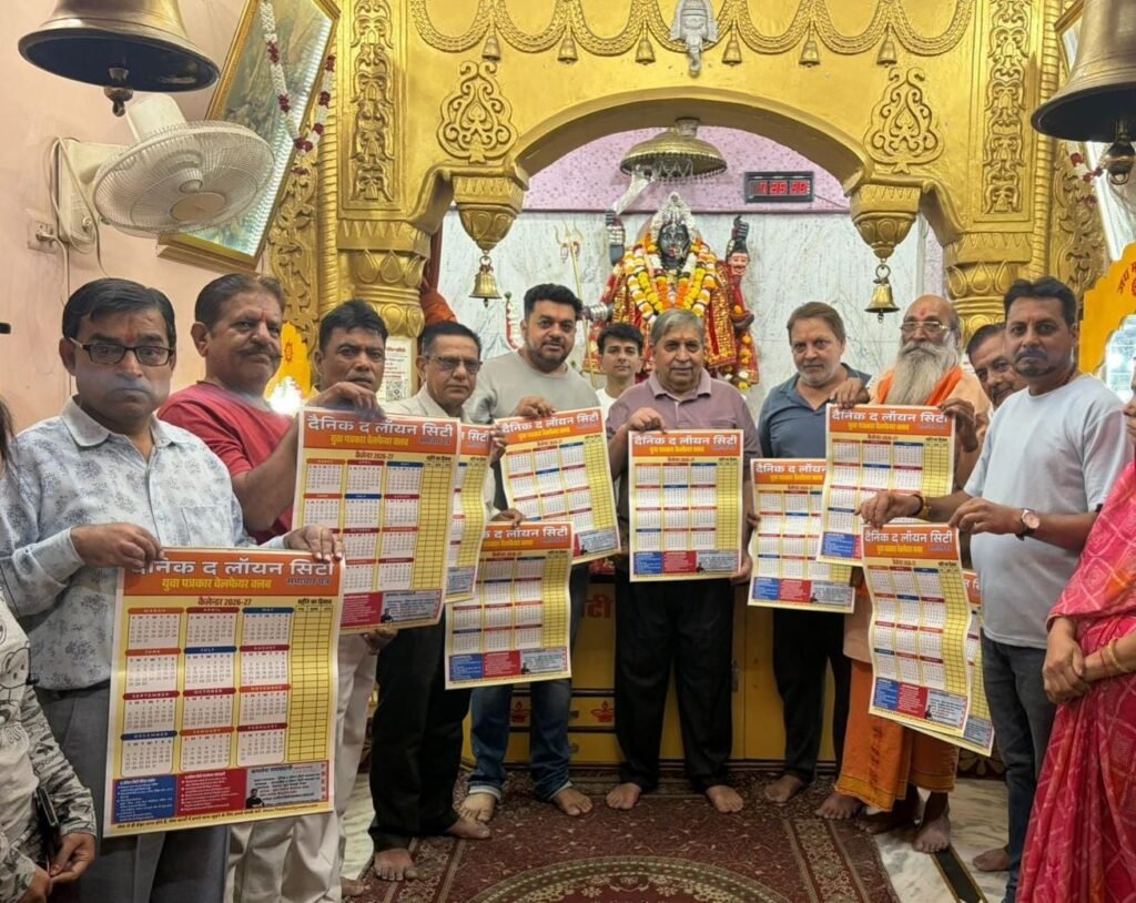 माँ काली के मंदिर मे हुआ दैनिक द लाॅयन सिटी समाचार पत्र 2026-27 कैलेंडर का विमोचन।दैनिक द लाॅयन सिटी – भोपाल – भक्तों की आस्था के केंद्र मा कालका चौराहा स्थित जय मां काली मंदिर में दैनिक द लाॅयन सिटी समाचार पत्र 2026-27 के कैलेंडर का विमोचन मा काली के चरणो मे उनके आशीर्वाद से किया गया । इस अवसर पर मुख्य रूप से दैनिक द लाॅयन सिटी समाचार पत्र के प्रधान संपादक श्री जगदीश कुमार रायचंदानी, सम्पादक कमलेश रायचंदानी, पंडित गयादास पाडे, सह पंडित मनोज पाडे, राजकुमार रायचंदानी मुन्ना आडतानी, हरीश कुमार लालवानी जय आसनानी, सुरेश चंदवानी जॉनी कुमार मूलचंदानी , रमेश कृष्णानी, रमेश साधवानी, प्रकाश मीणा, मोहन वत्नानी, रूबी राय आदी मोजूद रहे।