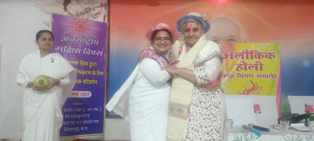 सादर प्रकाशनार्थप्रेस विज्ञप्ति*माँ का स्थान भगवान के बाद दूसरा — यशवंती दुहन**ब्रह्माकुमारीज़ के शिव अनुराग भवन में संघर्षशील मातृशक्ति का हुआ सम्मान…**बिलासपुर। अंतर्राष्ट्रीय महिला दिवस के अवसर पर राजकिशोर नगर स्थित ब्रह्माकुमारीज़ के शिव अनुराग भवन* में आयोजित एक विशेष आध्यात्मिक समारोह में हरियाणा से पधारी *यशवंती दुहन* ने अपने प्रेरणादायी उद्बोधन से उपस्थित जनसमूह को भावविभोर कर दिया। वे एसईसीएल के सीएमडी हरीश दुहन की माताजी हैं और कई दशकों से आध्यात्मिक मार्ग पर चलते हुए समाज सेवा में सक्रिय भूमिका निभा रही हैं। *अभिमान ईश्वर का शत्रु है…* अपने उद्बोधन में यशवंती दुहन ने विशेष रूप से बच्चों और युवाओं को संस्कारवान बनने की प्रेरणा दी। उन्होंने कहा कि जीवन में कभी भी अभिमान नहीं करना चाहिए, क्योंकि अभिमान मनुष्य को ईश्वर से दूर कर देता है। उन्होंने समझाया कि किसी को अपशब्द कहना या क्रोध करना आत्मिक उन्नति में सबसे बड़ा बाधक है। दुहन माताजी ने कहा कि यदि आज के भौतिकवादी युग में भी बच्चे अपने माता-पिता को भगवान के बाद दूसरा स्थान देते हैं, तो यह ईश्वर की बहुत बड़ी कृपा है। *आध्यात्मिक सेवा और त्याग की प्रेरक मिसाल…* माताजी ने अपने जीवन के अनुभव साझा करते हुए बताया कि वर्ष 1981 में ईश्वरीय ज्ञान से जुड़ने के कुछ ही दिनों के भीतर उन्होंने अपने घर में गीता पाठशाला प्रारंभ कर दी थी। लगभग 9–10 वर्षों तक उन्होंने अपने घर से ही सेवा केंद्र का संचालन किया और मधुबन (माउंट आबू) में भी लंबे समय तक रहकर निस्वार्थ सेवा की। उन्होंने कहा कि सच्ची सेवा वही है जो निस्वार्थ भाव से और बिना किसी दिखावे के की जाए। *नारी शक्ति का गौरव…* इस अवसर पर सेवा केंद्र प्रभारी **ब्रह्माकुमारी मंजू दीदी** ने यशवंती माताजी का सम्मान करते हुए उन्हें *शेरनी शक्ति* की संज्ञा दी। उन्होंने कहा कि “नारी नहीं तू अंबा है” — जब नारी अपने श्रेष्ठ आचरण और संस्कारों से जीवन जीती है, तब वह समाज के लिए प्रेरणा बन जाती है। माँ ही वह शक्ति है जो अपने बच्चों को संस्कारवान और शक्तिशाली बनाती है। *संघर्षशील महिलाओं का हुआ सम्मान* समारोह के दौरान समाज की ऐसी महिलाओं का भी सम्मान किया गया, जिन्होंने कठिन परिस्थितियों के बावजूद अपने परिवार को श्रेष्ठ संस्कारों के साथ आगे बढ़ाया है। इसमें टिकरापारा निवासी जयाकुमारी ने सब्जी बेचकर अपने तीन बच्चों की परवरिश की वहीं शनिचरी की सरोजनी माता ने भी इस व्यवसाय से घर को स्थिर किया।**मीडिया प्रभाग****ब्रह्माकुमारीज़, बिलासपुर**